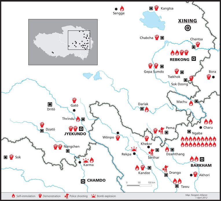 It is clear that the recent wave of self-immolations and protests taking place in southern Amdo and northern Kham in eastern Tibet is a reflection of an extreme form of defiance in response to an increasingly repressive atmosphere. The atmosphere is epitomized by the intensification of patriotic education campaigns in monasteries and is framed within a broader political context of discriminatory rule by authorities who generally see only variants of assimilation as the solution to the so-called ‘Tibet Question.’ However, it is less clear why this particular form of protest – self-immolation – is happening in this particular part of Tibet. The explanation is probably not found in differences of governance styles across this eastern Tibetan region, which has been fragmented, absorbed and ruled by the Chinese provinces of Sichuan, Qinghai, Gansu and the Tibet Autonomous Region. Additionally, there are large Tibetan areas in these provinces, under similar conditions of rule, where self-immolations have not taken place. Rather, local histories in these Tibetan areas need to be carefully considered, especially with respect to the evolving fusion between religious faith, political dissidence, and rapid dislocating social change.