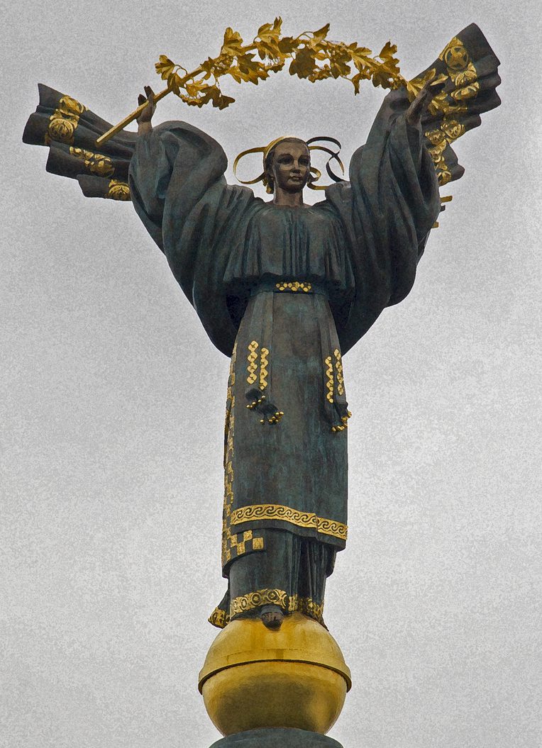 Despite the banality of his artistic intent, Fokanov’s image is visually compelling and, in the context of Russia’s war in Ukraine, resonates deeply with historical imagery that personifies the Ukrainian nation as female—specifically, as the Berehynia—a revered female figure in Slavic folklore; the keeper of the hearth, the “homemaker” of the nation, the progenitor of Ukraine, both figuratively and literally. Irina Zherebkina, a Ukrainian scholar of gender studies at Kharkiv National University, which is under siege from Russian bombardment as I write this, has described the Berehynia as the actualization of a symbolic body for the production of national identity—specifically, a female body that has been violated by outside aggressors. In 2001, a towering Berehynia statue was installed in Kyiv’s Independence Square at the site where the city’s central-most monument to Lenin once stood. In recent weeks, the girl carrying the bull has been circulating via messaging apps and social media with the caption “Ukraine saves Europe.”