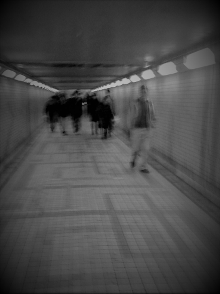 Ikebukuro station is surrounded by several areas that have distinct identities. In particular, the western and eastern sides of the station, separated by major train lines such as the Yamanote line, have often been pitted against each other in popular discourse (see Coates 2018). The northwest of Ikebukuro is known for its “edgy” nightlife, with love hotels, girls bars, and an area unofficially dubbed as Chinatown. In contrast, Ikebukuro’s east is a hub for young consumers, including stores for a variety of youth cultures and events celebrating Japanese popular culture. Although the station connects these two sides, W.E. road, a small subterranean passage that cuts underneath the train tracks on the northern side of the station, is one of the few alternative passages between Ikebukuro’s two regions. Originally Zо̄shigayazuidо̄, the passage was redubbed W.E. (West-East) Road in the 1980s, with an intentional pun to mimic we in English. The passage has since grown to become a symbol of the at-times fraught connection between the many identities of Ikebukuro. As a site between places, where strangers pass each other under the constant bustle of the train tracks, it is very much a transitory and liminal space. Moreover, its capacity to connect, while still remaining liminal, resonates with the contradictory socialities of many young mobile people I met in Tokyo. The image I took here, originally blurred to hide the identities of passers-by, seemed to capture something of this mood as well: a single figure in the foreground, ghostly transparent, with a larger group walking together in the background. The image reminds me of one of my favorite essays: Georg Simmel’s (1950 [1908]) “The Stranger,” with its emphasis on how figures of mobility reveal dynamics beyond questions of migration, helping us understand how mobility, intimacy, estrangement and belonging are at the core of how we construct what we may have in common with each other.