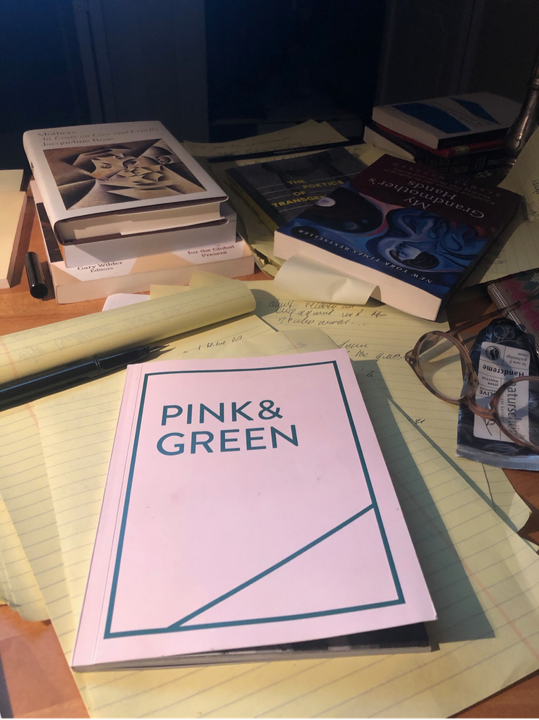 Let me be clear. I, too, am committed to working toward political and economic change that is systemic and far-reaching, rather than simply papering over existent conditions. And, yet, it was my participation in the creation of the Pink & Green art zine that brought hope and joy. Not just because small-press objects are things I love, or because they always already evade critique and branding, but because they encourage the contemplation of collective politics and collaboration that mark a necessary precondition for initiating such change.