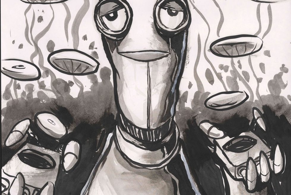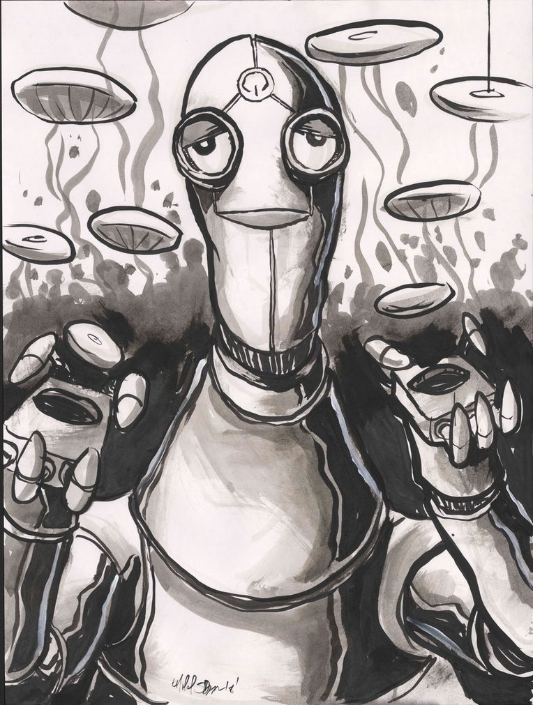 Even as the world rumbles in protest at the penetrating gaze of Big Brother in his twenty-first-century digital guise, little mother wins a prize. She, too, “knows everything”—as her tagline tells us—and yet, unlike the cold, punitive aim of his spying eye, her electric blue sockets are warm with domestic sensibility, her attention diffuse and supportive. With just enough face to intimate relatability, she lacks any specific qualities or desires of her own. “Mother requires no maintenance,” we are assured. Her expression fixed in an unreadable smile, she wears the mask of our relief. To activate her caring programs, we need just “delicately touch her between the eyes.”