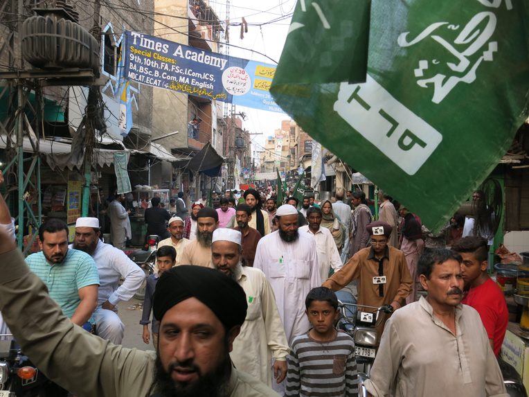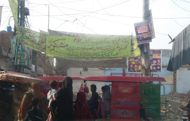 Overnight, prayer leaders of six mosques from the area used loudspeakers to call their supporters to protest, and by 10:00 a.m. on Saturday morning more than two thousand TLP workers and supporters had gathered on Main Satiana Road in front of Illahi Abad. They did not disperse until the police filed a blasphemy case. The leader of the mob, Muhammad Shahbaz, was later granted a political ticket to contest the election by the TLP. “We want the Christian families that have left to return to their homes and the TLP is prepared to offer them protection. We just want to make it clear that no one can get away with blaspheming against our prophet. If it wasn’t for TLP, Illahi Abad would have been a Gojra or Shanti Nagar by now,” said Shahbaz. (Gojra was burned down in 2009 over a blasphemy charge and Shanti Nagar in 1998.)