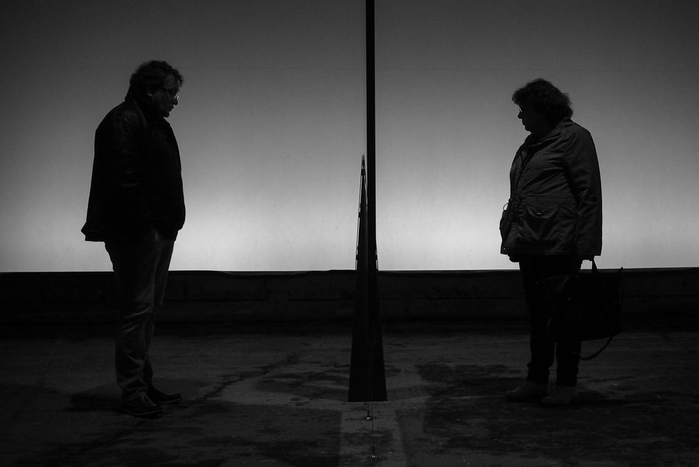 To look straight on, standing to the side. My second meaning is how I imagine Desjarlais’s relationship to his subject, not only spatially but also in character: an intricate display of closeness and remoteness. A photograph early in the book shows one man photographing another, posing with (or standing near) the blind man. A woman stands with her back to the author, between Desjarlais’s lens and the other photographer’s subjects, the back of the woman’s coat sharing the focal point with the blind man’s face. Desjarlais returns to the scene several times. What strikes me most is the unchoreographed nature of the photograph, as well as the distance that it signifies and accepts. It’s a glimpse of the blind man. But it is also fixed on him, even through a crowd. Is the photograph taken with these men a transaction? He seems slightly off-kilter, face twisted, abject. Is he being harassed, or the butt of some joke? The scene is filled with competing affects, and Desjarlais remains fixed.