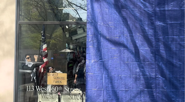 “By the fourth hour of the encampment it was impossible to ignore what was happening in the lobby. The sun illuminated our Palestinian flags, posters, and symbols of resistance for all passing by to see. The crowd accumulating outside grew exponentially as time passed. Fordham could no longer be silent to our efforts, I thought; they could not ignore an action this provocative. I was surprised when Fordham maintenance workers were instructed to throw a tarp over our Palestinian imagery—not because of our university’s refusal to address issues that clearly concern their students, but because of how brazenly it was willing to act to suppress these students. I suppose this was a sign of what would come later in the day. The encampment closed in on its fifth hour, as did four and a half dozen police officers, encircling the lobby in layers: eight inside, twenty surrounding the doors, another twenty-five in another circle around them. Escape was becoming more elusive as they blockaded the escalators, stairs, hallways, entrances. I hadn’t even had breakfast yet, and probably for the best. I felt trapped and suffocated. I began to feel disoriented, light-headed and vision-clouded. I squinted to look outside where over two-hundred students were now organizing their own impromptu protest in support of the camp. The solidarity overwhelmed, almost replacing the oxygen deprivation and momentarily subduing the panic. But I couldn’t risk arrest like the others. I could barely scrape together enough to pay rent, and if I lost my scholarship, I would end up with permanently-crippling debt in a matter of hours… I couldn’t tell if I was choking on panic or the stale air from the greenhouse effect of the afternoon sun burning through the lobby’s massive glass windows, considering the many hours now since the facilities manager had shut down the air conditioning and HVAC circulation system.”