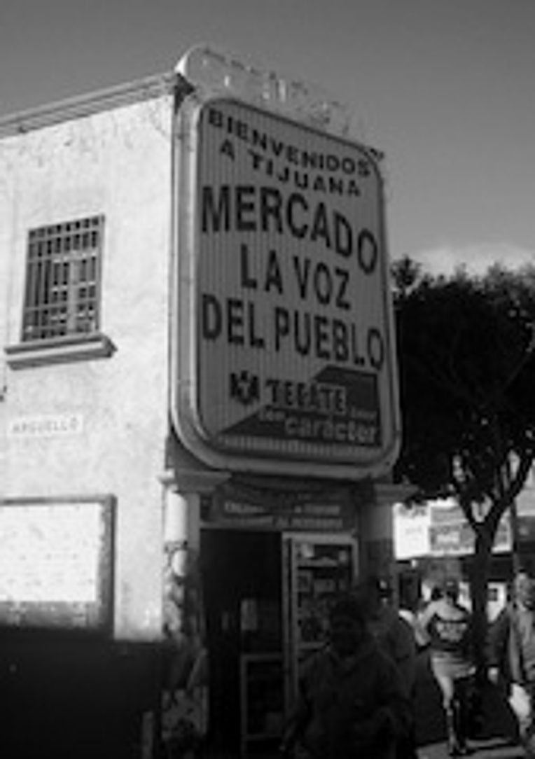 “Welcome to Tijuana,” the sign reads, “‘The Voice of the People’ Market.”