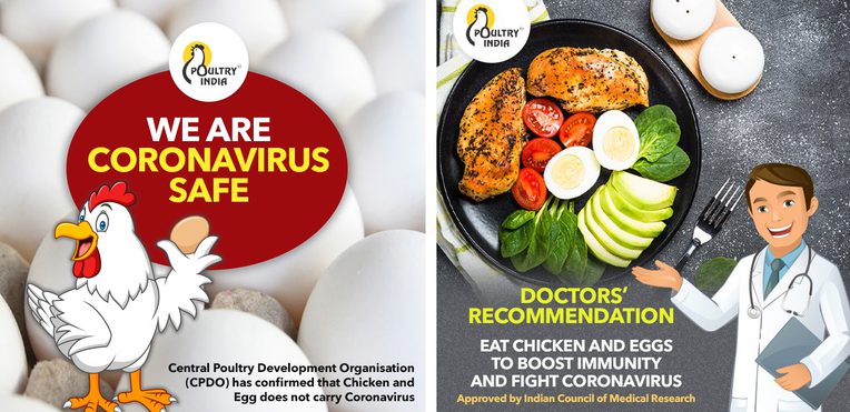 The poultry industry has sought to counter the infodemic by channeling other affects and promoting a biopolitics of immunity. The Indian Council for Medical Research and the Food Safety and Standards Authority of India were mobilized to declare chicken consumption safe. Clarifications were widely circulated, as were anthropomorphized renditions of “happy” chickens telling viewers “WE ARE CORONA VIRUS SAFE.” A further campaign has entailed using the birds to sell immunity through commodity consumption: eating chicken is not only safe, it keeps Covid-19 at bay by building immunity. “Much of this has come a month too late,” says Kamal, reeling from the impacts of microblogging.