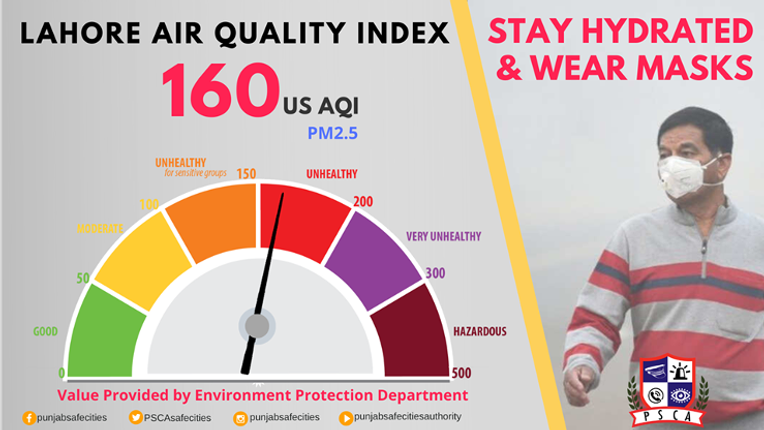 A few government agencies in Pakistan also provide outlets for the sharing of atmospheric information, like the Punjab EPD, which posts US AQI figures on its website. AQIs circulate offline too. For example, the Punjab Safe City Authority (PSCA)—the provincial government authority tasked with reforming urban policing and safety—posts US AQI readings on its electronic information boards along Lahore’s main thoroughfares as well as on its popular social media feeds (see image below). Accompanying the US AQI figures (provided by the EPD) are visualizations situating the viewer-breather within a context of comparison: namely, a speed-o-meter style gauge that locates the daily US AQI figure on the 0–500 scale from “Good” to “Hazardous.” It also includes an image of a man with a mask and EPD recommendations like “stay hydrated and wear masks” in bold red font. Which measurements should be used, however, is contested. For example, the Lahore High Court petition contends that although the PSCA’s practice of publicizing air quality information “generally support[s] the environmental law concept of access to information,” it calls on the PSCA (as well as the EPD) to use other indices (Petition, part A “Facts” at para 8). More generally, as Sabrina Toppa, a Lahore-based journalist told me this past December while I was at LUMS, “government officials, citizens, and entities like AirVisual dispute which monitors to use, where they should be situated, and who has the technical acumen to assess the data.”