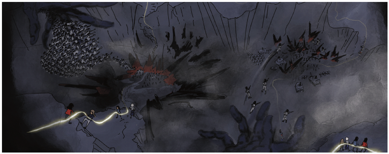 The feather appears at the start of the book, our journey. Holding onto a stream of light, we travel across large territory—the past and the present—necessary but insufficient steps towards arriving at the livable future we dare to imagine.