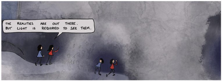 When I was asked by a journalist in late 2020 how we are to know that we live in dark times, I pointed to alarming statistics that indicate horrific, worldwide, human suffering. When she asked how we are to recognize the darkness, I turned to pages from Light in Dark Times, the graphic ethnography that Charlotte Corden illustrated and that I authored.