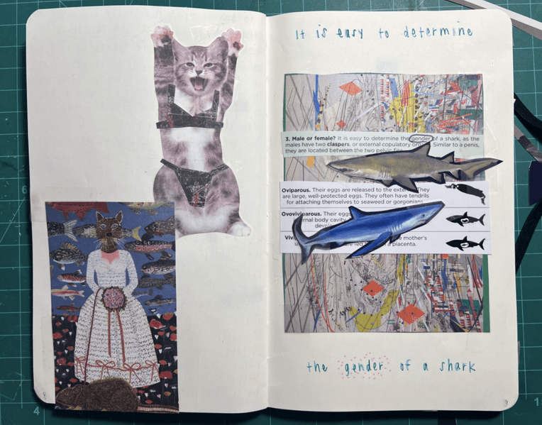 In this analogue scrapbook, Audrey creatively merges the knowledge of concepts covered in class, her own reflections on the topics she is interested in, and interludes of collages as respites from the verbal. Audrey covers the biological underpinnings of the sex divide (conflated with the gender “divide”) and follows with its entrance into patriarchy, workforce, and race. Reflective and self-aware, Audrey warns us about potential biases related to her positionality.
